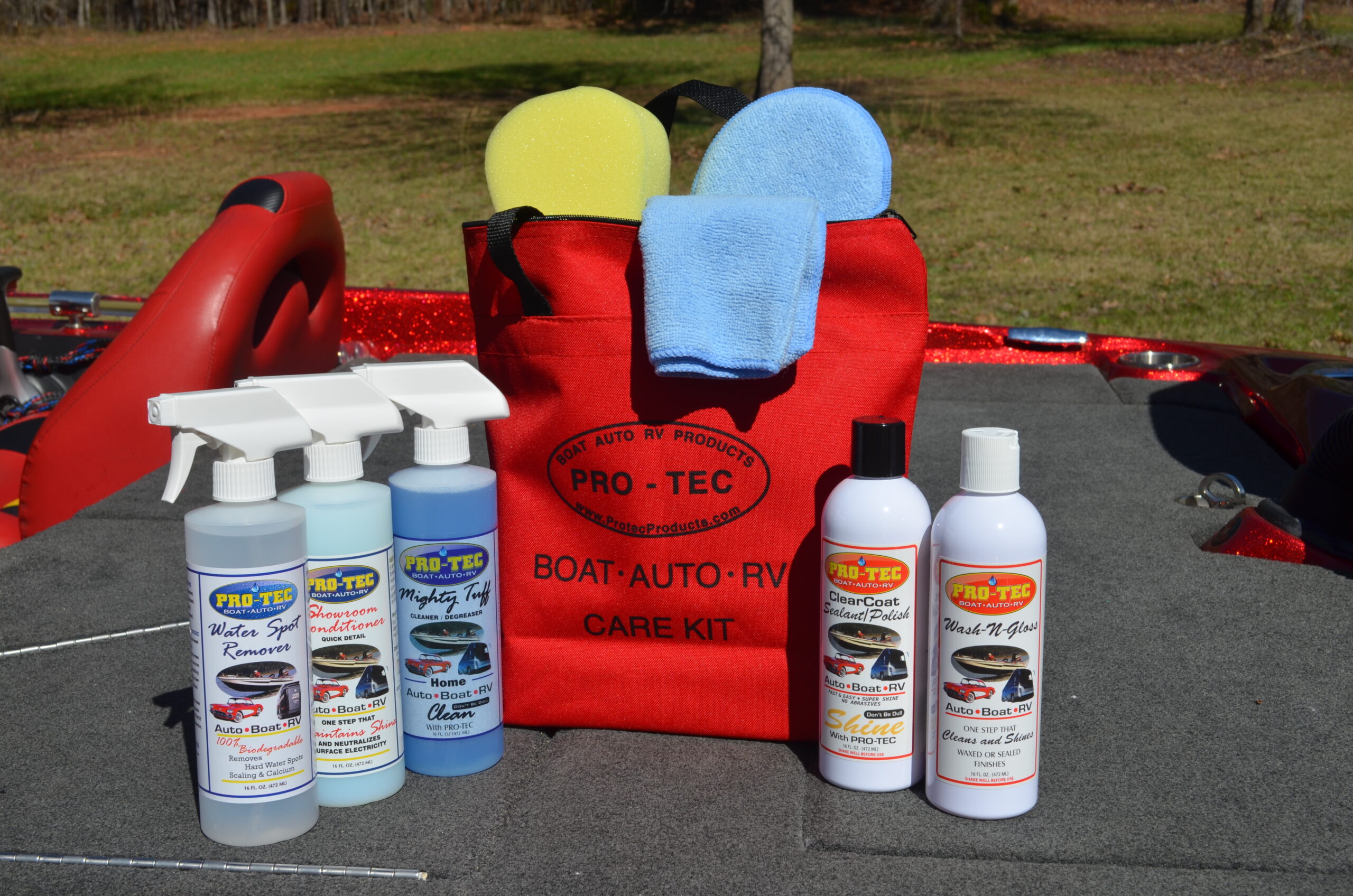 The perfect kit for your boat, auto, and r.v.'s to keep them looking new and protect your investment. The waterproof bag makes it all convenient.